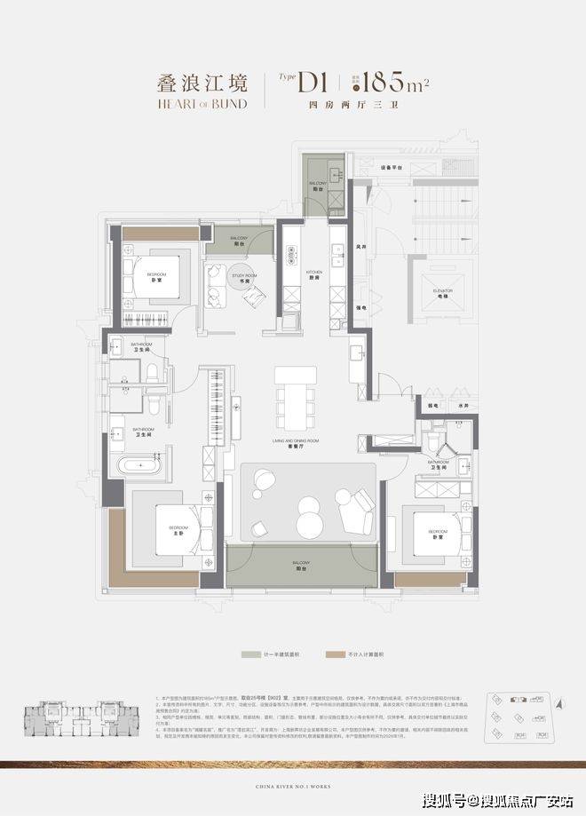 年前澐启滨江185㎡四房户型,改善型需求占从导。